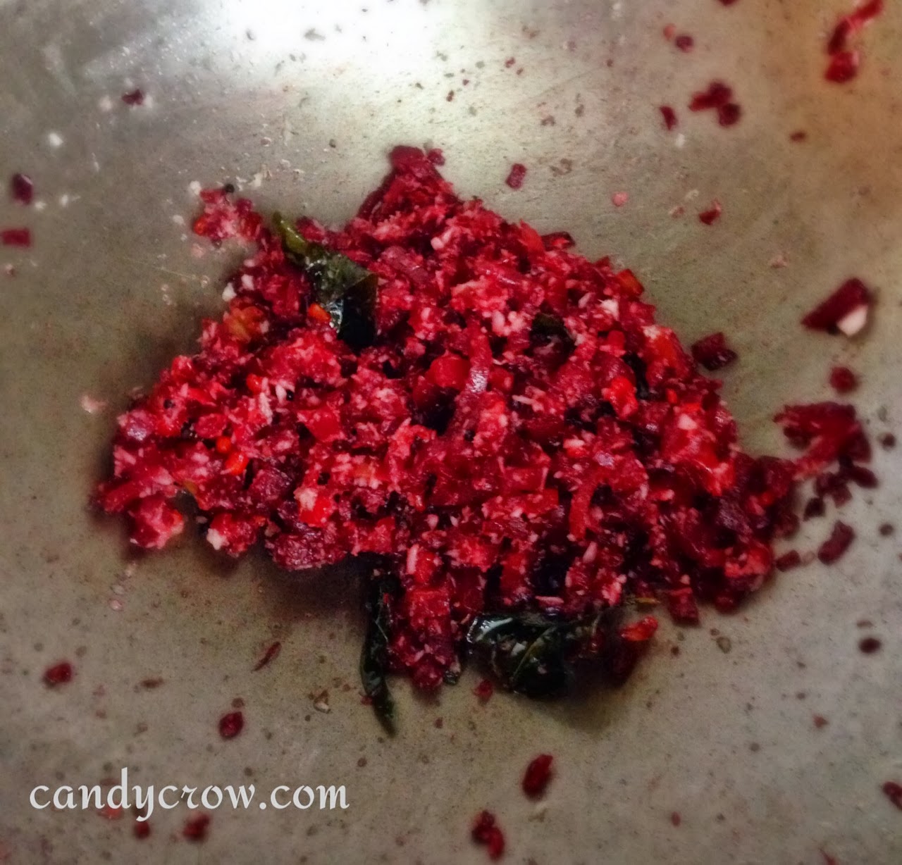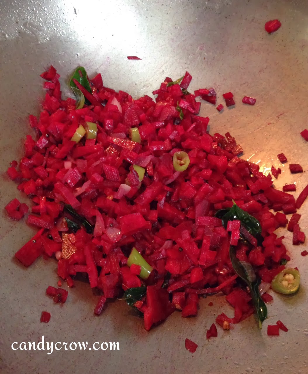 3. Add finely chopped beetroot and saute it until they are well coated with oil.