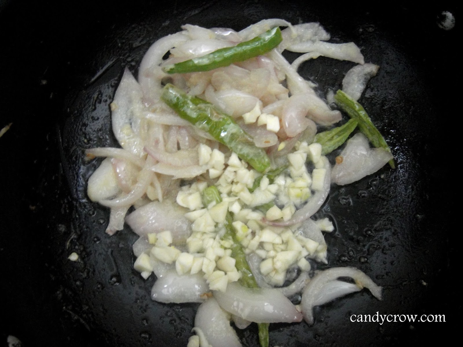 5. Add finely chopped garlic pods and saute it for a couple of minutes.